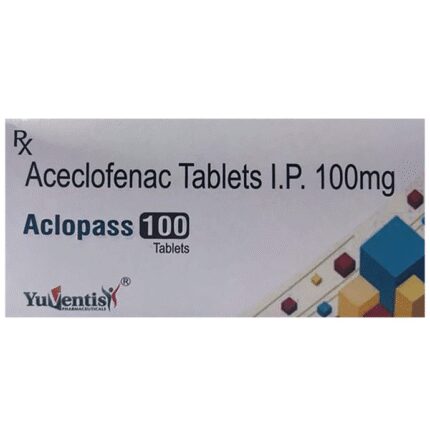 Aclopass 100 Tablet is a pain-relieving medicine. It alleviates pain and inflammation in conditions like rheumatoid arthritis, ankylosing spondylitis, and osteoarthritis. Aclopass 100 Tablet should be taken in the dose and duration as advised by your doctor. It should be taken with food or milk to prevent stomach upset. Taking the medicine regularly at the right times increases its effectiveness. It is important to keep taking the medicine regularly until your doctor tells you it is safe to stop.Vomiting, stomach pain, nausea, and indigestion are some of the common side effects of taking this medicine. It may also cause dizziness, drowsiness, or visual disturbances. Your doctor may regularly monitor your kidney function, liver function, and levels of blood components if you are taking this medicine for long-term treatment. Long-term use may lead to serious complications such as stomach bleeding and kidney problems. Aclopass 100 Tablet is not recommended if you are pregnant or breastfeeding.