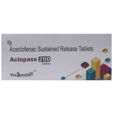 Aclopass 200 Tablet SR is a pain-relieving medicine. It effectively alleviates pain and inflammation in conditions like rheumatoid arthritis, ankylosing spondylitis, and osteoarthritis. Aclopass 200 Tablet SR should be taken in the dose and duration as advised by your doctor. It should be taken with food or milk to prevent stomach upset.Common side effects of this medicine include dizziness, indigestion, nausea, diarrhea, abdominal pain, and increased liver enzymes. Your doctor may regularly monitor your kidney function, liver function, and levels of blood components if you are taking this medicine for long-term treatment. Long-term use may lead to serious complications such as stomach bleeding and kidney problems.