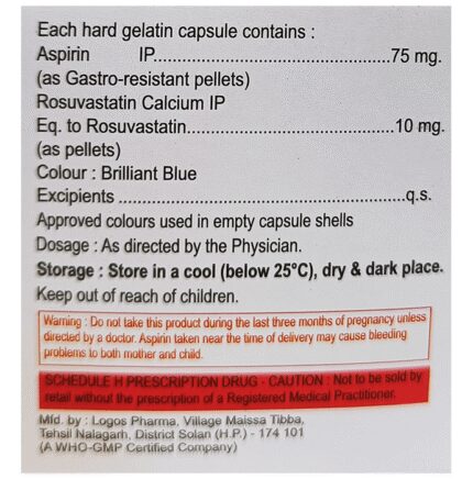 Acmerose A 10 Capsule is a combination of two medicines used to prevent heart attack, stroke, and angina. This medicine reduces the '__'bad'__' cholesterol (LDL) and triglycerides (fats) levels. Moreover, it also decreases the formation of blood clots. Acmerose A 10 Capsule should be taken with food to avoid stomach upset. You should take it regularly at evenly spaced intervals as per the schedule prescribed by your doctor. Taking it at the same time every day will help you remember to take it. The dose and duration of treatment will depend on what you are being treated for. Do not stop taking it until you have finished the complete course, even when you feel better. Lifestyle changes like low-fat diet, exercise and not smoking may help this medicine to work better.Nausea, abdominal pain, headache, and constipation are some common side effects of this medicine.This medicine increases your risk of bleeding, so it is important to be careful while shaving, cutting nails, using sharp objects, or engaging in contact sports (e.g., football, wrestling). Let your doctor know if you notice yellowing of skin, muscle pain or dark urine.Before taking this medicine, tell your doctor if you have liver or kidney disease or you are suffering from bleeding disorder. You must tell your doctor if you are pregnant, planning pregnancy or breastfeeding. You should also let your healthcare team know all other medicines you are taking as they may affect, or be affected by this medicine.