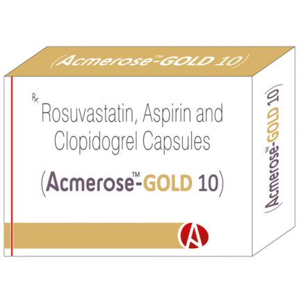 Acmerose-Gold 10 Capsule is used for prevention of heart attack, stroke and treatment of peripheral vascular disease. It is a combination of medicines that prevent clot formation in the blood vessels. It also helps to reduce increased cholesterol and triglycerides levels. Acmerose-Gold 10 Capsule is used for prevention of heart attack. It is a combination of medicines that prevents clot formation in the blood vessels. It also helps to reduce increased cholesterol and triglycerides levels. This medicine should be taken with food regularly at a fixed time each day. This medicine should not be stopped abruptly and taken strictly as advised by the doctor. Lifestyle changes like low-fat diet, exercise, and not smoking may help this medicine work better. This medicine increases your risk of bleeding, so it is important to be careful while shaving, cutting nails, and using sharp objects. Few common side effects of this medicine may include stomach pain, indigestion, diarrhea, and muscle pain.