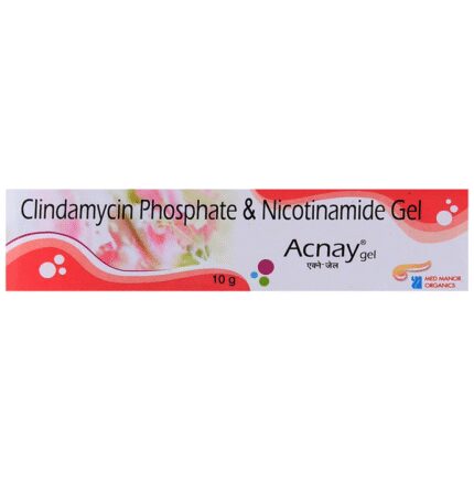 Acnay Gel is a combination medicine that is used to treats acne. It minimizes excessive oil production, thus reduces inflammation. It also prevents the growth of the microorganisms that cause acne. This also helps to prevent pimples, blackheads, and whiteheads on the skin. Acnay Gel is only meant for external use and should be used as advised by your doctor. A thin layer of the medicine should be applied only to the affected areas of the skin with clean and dry hands. Wash your hands before and after applying the medicine. If it gets into your eyes, nose, mouth, or vagina rinse with water. It may take several days to weeks for your symptoms to improve, but you should keep using this medicine regularly. The course of the treatment should be completed to ensure better efficacy of the medicine. If your condition does not improve or gets worse, you should talk to your doctor.This is usually a safe medicine, however, it may cause dryness, peeling, redness, and burning sensation at the application site. These side effects are usually mild and self-limiting. Most of these side effects can be prevented by using a skin moisturizer and drinking plenty of water. Serious side effects are rare. You must consult the doctor if you experience any allergic reaction (rashes, itching, swelling, shortness of breath, etc.).Before using this medicine, it is important to tell your doctor if you are taking or have recently taken any other medicines for the same disease or other diseases. Pregnant and breastfeeding women should use this medicine with proper consultation and caution. If you are a known allergic to the medicine, you must refrain from using this medicine and consult your doctor. During the course of the treatment, do not touch, prick or scratch the infected skin areas as this may worsen or spread the acne. Avoid unnecessary sun exposure and use a sunscreen before stepping out in the sun. It is also advised, not to receive any cosmetic procedures without asking your doctor.