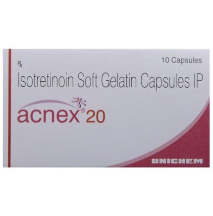 Acnex 20 Capsule belongs to a group of medicines called retinoids (vitamin A derivative). It is used to treat severe acne that has not responded to other treatments. Acnex 20 Capsule should be used in the dose and duration as advised by your doctor. Take it with food, preferably at the same time each day to avoid a missed dose. It may take several weeks for your symptoms to improve but keep taking the medicine regularly to get the most benefit. If you notice no improvement after a few weeks, see your doctor again.The most common side effects include dry skin, rash, and increased liver enzymes. They are not usually serious and often disappear after getting used to the medicine but if they bother you or do not go away, tell your doctor.Acnex 20 Capsule may make you more sensitive to sunlight so you should limit your exposure to the sun. It may also make your skin more fragile. Avoid any waxing (hair removal), or laser treatments during treatment. Additionally, it may cause dryness of the mouth, lips, and eyes so drink plenty of water and use a moisturizer. This medicine may lead to birth defects, do consult your doctor if you are pregnant or planning pregnancy.