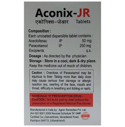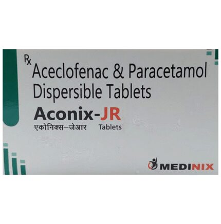 Aconix-JR Tablet DT is a pain-relieving medicine. It is used to reduce pain and inflammation in conditions like rheumatoid arthritis, ankylosing spondylitis, and osteoarthritis. It may also be used to relieve muscle pain, back pain, toothache, or pain in the ear and throat. Aconix-JR Tablet DT should be taken with or without food. You should take it regularly as advised by your doctor. Your doctor may change the dose and time between doses according to your pain level and your needs. Do not take more or use it for a longer duration than recommended by your doctor.Some of the common side effects of this medicine include nausea, vomiting, stomach pain, heartburn, and diarrhea. If any of these side effects bother you or do not go away with time, you should let your doctor know. Your doctor may help you with ways to reduce or prevent these side effects by prescribing an alternative medicine or adjusting the dose.Aconix-JR Tablet DT may not be suitable for everybody. Before taking it, let your doctor know if you have any problems with your heart, kidneys, liver, or have stomach ulcers. To make sure it is safe for you, let your doctor know about all the other medicines you are taking. Pregnant and breastfeeding mothers should first consult their doctors before using Aconix-JR Tablet DT.