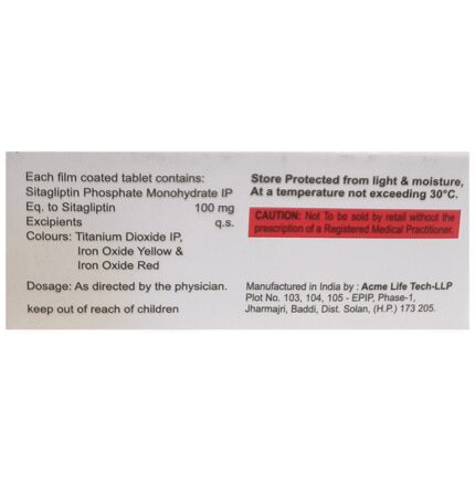 Acosita 100 Tablet is a medicine used to treat type 2 diabetes mellitus. It is used together with a healthy diet and regular exercise to control blood sugar levels. This helps to prevent serious complications of diabetes like kidney damage and blindness. Acosita 100 Tablet is normally prescribed when diet and exercise alone or other medicines do not prove sufficient to control your blood sugar level. Your doctor may prescribe it alone or along with other diabetes medicines. It may be taken on an empty stomach or with a meal. The dose will depend on your condition, and blood sugar levels. Therefore, you should use it as advised by your doctor.You should take it regularly at the same time each day to get the most benefit, and you should not stop unless your doctor recommends it. This medicine is helping you to control your blood sugar levels and prevent serious complications in the future. It is important to stay on the diet and exercise program recommended by your doctor while taking this medicine. Your lifestyle plays a big part in controlling diabetes.The most common side effect of taking this medicine is a headache. This is usually minor and improves with time. Low blood sugar level (hypoglycemia) is a possible side effect if you are also taking other diabetes medicines like insulin or sulfonylurea, so you need to know how to recognize and deal with it. It may also cause upper respiratory tract infections like sore throat, cough, and cold. Contact your doctor if the side effects worry you or if they do not go away.Before taking this medicine, let your doctor know if you have ever had kidney disease, heart or pancreas problems, or if you drink a lot of alcohol. Pregnant or breastfeeding women should also consult their doctor before taking it. Some other medicines you are taking may interfere with this medicine's working. So, make sure your doctor knows about all the other medicines you are using. Limit your alcohol intake while taking this medicine because it can increase your risk of developing low blood sugar levels. You may need regular tests such as kidney function and blood glucose levels to check that the medicine is working properly.