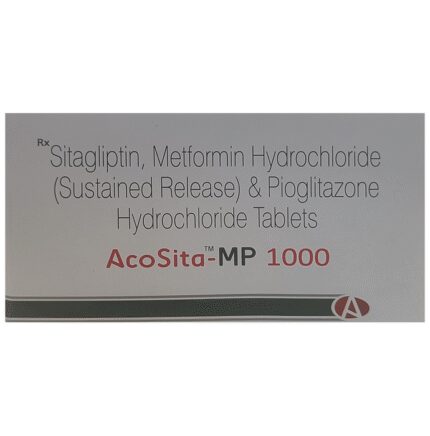 Acosita-MP 1000 Tablet SR is indicated as an adjunct to diet and exercise to improve glycemic control in adults with type 2 diabetes. It controls your blood sugar levels and helps prevent serious complications in the future. Your doctor may prescribe it alone or along with other diabetes medicines. Acosita-MP 1000 Tablet SR may be taken on an empty stomach or with a meal. However, the dose will depend on your condition and blood sugar levels; therefore, use it as advised by your doctor and do not stop taking this medicine unless the doctor recommends otherwise. Also, take it regularly and at the same time each day to get the most benefit. It is also crucial to stay on the diet and exercise program recommended by the doctor while taking this medicine.The most common side effects of this medicine include nausea, vomiting, diarrhea, flatulence, abdominal pain, and constipation. These effects are usually minor and improve with time. Low blood sugar level (hypoglycemia) is a possible side effect if you are also taking other diabetes medicines, so you need to know how to recognize and deal with it. Contact the doctor if the side effects are worrisome or do not go away.Before taking Acosita-MP 1000 Tablet SR, let the doctor know if you have ever had kidney disease, heart or pancreas problems, or drink a lot of alcohol. Pregnant or breastfeeding women should also consult their doctors before taking this medicine. Some other medicines you are taking may also interfere with this combination drug; therefore, make sure your doctor knows about all the other medicines you are using. Limit your alcohol intake while taking this medicine because it can increase your risk of developing low blood sugar levels. You may also need regular tests such as kidney function and blood glucose levels to check that the medicine is working properly.