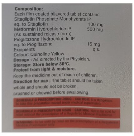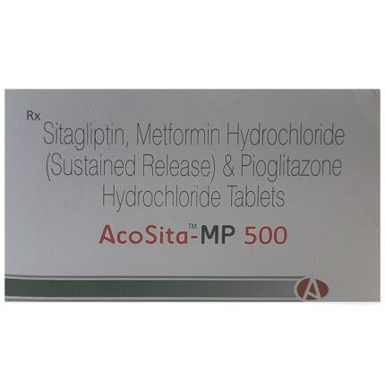 Acosita-MP 500 Tablet SR is indicated as an adjunct to diet and exercise to improve glycemic control in adults with type 2 diabetes. It controls your blood sugar levels and helps prevent serious complications in the future. Your doctor may prescribe it alone or along with other diabetes medicines. Acosita-MP 500 Tablet SR may be taken on an empty stomach or with a meal. However, the dose will depend on your condition and blood sugar levels; therefore, use it as advised by your doctor and do not stop taking this medicine unless the doctor recommends otherwise. Also, take it regularly and at the same time each day to get the most benefit. It is also crucial to stay on the diet and exercise program recommended by the doctor while taking this medicine.The most common side effects of this medicine include nausea, vomiting, diarrhea, flatulence, abdominal pain, and constipation. These effects are usually minor and improve with time. Low blood sugar level (hypoglycemia) is a possible side effect if you are also taking other diabetes medicines, so you need to know how to recognize and deal with it. Contact the doctor if the side effects are worrisome or do not go away.Before taking Acosita-MP 500 Tablet SR, let the doctor know if you have ever had kidney disease, heart or pancreas problems, or drink a lot of alcohol. Pregnant or breastfeeding women should also consult their doctors before taking this medicine. Some other medicines you are taking may also interfere with this combination drug; therefore, make sure your doctor knows about all the other medicines you are using. Limit your alcohol intake while taking this medicine because it can increase your risk of developing low blood sugar levels. You may also need regular tests such as kidney function and blood glucose levels to check that the medicine is working properly.