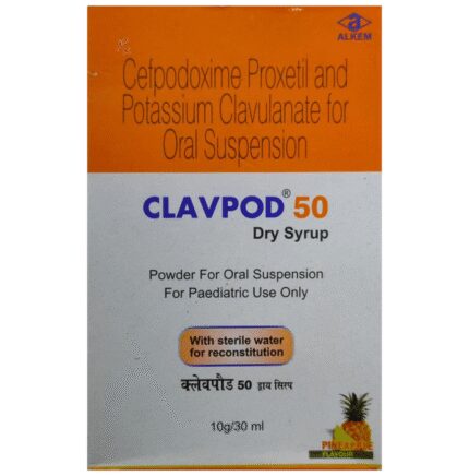 In Treatment of Respiratory tract infection Respiratory tract infections are those infections that can affect the sinuses, throat, airways or lungs. Clavpod 50 Dry Syrup Pineapple contains two different medicines, Cefpodoxime Proxetil and Clavulanic Acid, that work together to kill the bacteria that cause respiratory tract infections. Cefpodoxime Proxetil works by stopping the growth of bacteria. Clavulanic Acid reduces resistance and enhances the activity of Cefpodoxime Proxetil against bacteria.u003cbr>u003cbr>It usually makes you feel better within a few days, but you should continue taking it as prescribed even when you feel better to make sure that all bacteria are killed and do not become resistant.