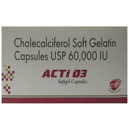 Acti D3 Softgel Capsule is used to treat vitamin D deficiency and osteoporosis. It helps the body absorb calcium, which is essential for maintaining strong and healthy bones. It is used when the diet does not provide enough. Acti D3 Softgel Capsule should be taken as directed by your doctor. It is best taken with or after food as this helps your body absorb it, and you should take it regularly to get the most benefit. If you are using it to treat osteoporosis, you will also be prescribed other medicines. This medicine may be only part of a complete treatment program that includes making changes to your diet and taking calcium and vitamin supplements. Learn about the foods you should eat to ensure you get enough calcium and vitamin D.Acti D3 Softgel Capsule has few side effects, and none are common. If you take too much, you may feel weakness, muscle pain, or a metallic taste in your mouth. If you experience any such side effects, speak with your doctor. They may be able to help you reduce or treat the symptoms.Before taking this medicine, tell your doctor if you have high calcium levels in your blood or if you have any heart, kidney, or liver disease. Some other medicines can decrease the absorption of vitamin D3, so let your doctor know all other medicines you are taking to make sure you are safe. This medicine may help during pregnancy when your body needs more vitamin D, but too much could harm your baby. Discuss with your doctor.