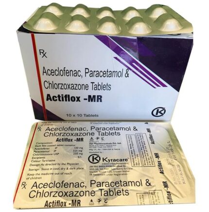 Actiflox-MR Tablet is a combination medicine that helps in relieving muscular pain. It works by blocking the release of certain chemical messengers that cause pain, inflammation, and fever. This improves the movement of muscles and provides relief from pain and discomfort. Actiflox-MR Tablet can be taken with or without food. The dose and duration will depend on the severity of your condition. You should keep taking the medicine even if you feel better until the doctor says it is alright to stop using it.Using this medicine may cause common side effects such as nausea, vomiting, heartburn, stomach pain, diarrhea, and loss of appetite. If these persist or get worse, let your doctor know. In general, you should try to use the smallest amount necessary to control your symptoms.Before using the medicine, you should tell your doctor if you have any other medical conditions or disorders. To make sure it is safe, you should let your doctor know all the other medicines you are taking. Also, tell your doctor if you have any problems with the liver or kidneys. You should avoid the consumption of alcohol while on treatment with this medicine. Pregnant and breastfeeding women should consult their doctors first before using the medicine.