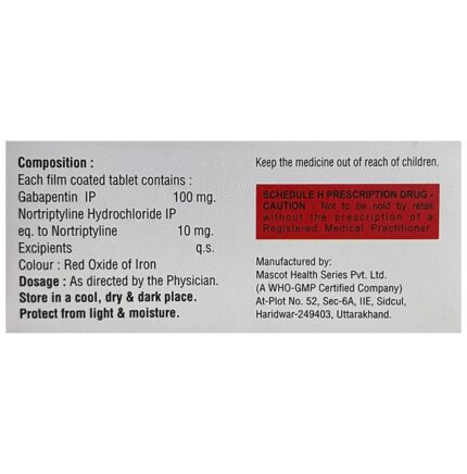 Activegaba-NT 100 Tablet is a combination medicine used for the treatment of neuropathic pain. This medicine decreases the pain by stopping the movement of pain signals to the brain. Activegaba-NT 100 Tablet is taken by mouth, with or without food and preferably at night. It is advised to take it at a fixed time each day to maintain a consistent level of medicine in the blood. In case you miss a dose of this medicine, take it as soon as you remember. Finish the full course of treatment even if you feel better. It is important not to stop taking this medicine suddenly without talking to the doctor as it may worsen your symptoms.Some common side effects of this medicine constipation, difficulty in urination, weight gain, tiredness, and dryness in mouth. It may also cause dizziness and sleepiness, so do not drive or do anything that requires mental focus until you know how this medicine affects you. This medicine may cause weight gain and to control it, you should exercise regularly and take a balanced diet. Remember to inform the doctor if you develop any unusual changes in mood as this medicine may lead to suicidal thoughts.Before taking this medicine let your doctor know if you suffer from kidney or liver disease. Your doctor should also know about all other medicines you are taking as many of these may make this medicine less effective or change the way it works. Inform your doctor if you are pregnant, planning pregnancy or breastfeeding.