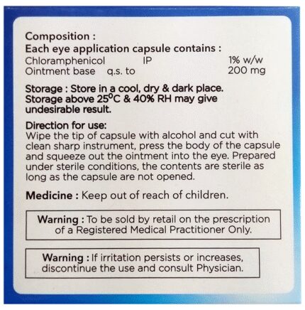 Activemycetin Eye Caps is an antibiotic that fights bacteria. It is used to treat infections of the eye caused by bacteria. It works by killing the bacteria that cause these problems. Activemycetin Eye Caps helps to improve your symptoms and cure the underlying infection. Follow your doctor’s instructions precisely for administering this medicine in the eye. It should be used regularly at evenly spaced time intervals as prescribed by your doctor. Do not skip any doses and finish the full course of treatment even if you feel better. Stopping the medicine too early may lead to the infection returning or worsening.It is effective in killing many types of bacteria. However, it will not work for other types of eye infections (e.g.viral) and therefore, should only be used if prescribed by your doctor. Unnecessary use of any antibiotic can lead to a decrease in its effectiveness in the future.Commonly seen side effects seen with this medicine include temporary stinging in eyes and blurred vision after administration. Consult your doctor if these side effects persist or if your condition worsens. Pregnant and breastfeeding mothers should consult their doctor before using it. Contact lenses should not be worn while you are using this medicine or while you have the bacterial eye infection. This medicine should not be used for longer than five days without consulting your doctor.
