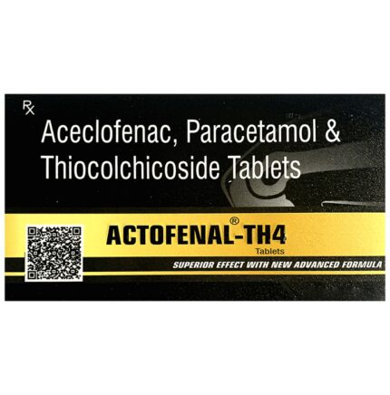 Actofenal-TH4 Tablet is a combination medicine that helps in relieving muscular pain. It works by blocking the release of certain chemical messengers that cause pain, inflammation, and fever. This improves the movement of muscles and provides relief from pain and discomfort. Actofenal-TH4 Tablet should be taken with food. This will prevent you from getting an upset stomach. The dose and duration will depend on the severity of your condition. You should keep taking the medicine even if you feel better until the doctor says it is alright to stop using it.Using this medicine may cause few common side effects such as nausea, vomiting, heartburn, stomach pain, diarrhea, loss of appetite, and dryness in the mouth. If any of these side effects do not resolve with time or get worse, you should let your doctor know. Your doctor may be able to suggest ways of preventing or reducing the side effects. In general, you should try to use the smallest amount necessary to control your symptoms.Before using the medicine, you should tell your doctor if you have any other medical conditions or disorders. To make sure it is safe, you should let your doctor know all the other medicines you are taking. Also, tell your doctor if you have any problems with your liver or kidneys. You should avoid the consumption of alcohol while on treatment with this medicine. Pregnant and breastfeeding women should consult their doctors first before using the medicine.
