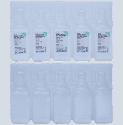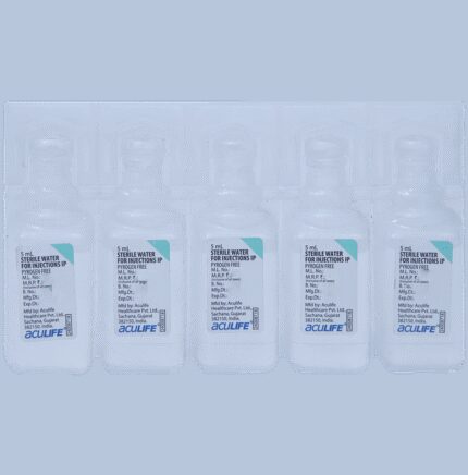 Aculife Sterile Water for injection is a sterile preparation of water which contains no bacteriostat, antimicrobial agent or added buffer. It is supplied only in single-dose containers, indicated only for diluting or dissolving drugs for intravenous, intramuscular or subcutaneous injection.Aculife Sterile Water for injection is administered as an injection by a healthcare professional. Kindly do not self administer. There are no common side effects seen with this medicine.Aculife Sterile Water for injection is administered as an injection by a healthcare professional. Kindly do not self administer. There are no common side effects seen with this medicine.