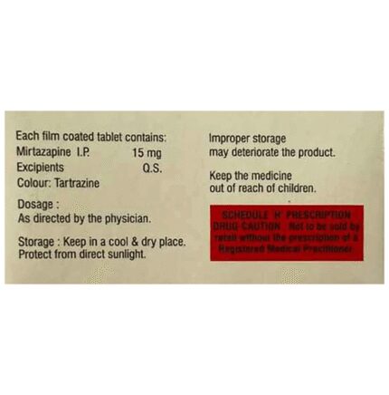 Addmir 15 Tablet is used in the treatment of depression. This medicine works by increasing the level of chemical messengers (serotonin and noradrenaline) in the brain that help calm the brain and relax the nerves, thus treating your depression. Addmir 15 Tablet may be taken with or without food. It is advised to take this medicine at a fixed time each day to maintain a consistent level in the blood. If you miss any doses, take it as soon as you remember. Do not skip any doses and finish the full course of treatment even if you feel better. It is important that this medication is not stopped suddenly as it may worsen your symptoms.Some common side effects of this medicine include dryness in the mouth, increased appetite, and headaches. It even causes dizziness and sleepiness, so do not drive or do anything that requires mental focus until you know how this medicine affects you. This medicine may cause weight gain; therefore, you should have a balanced diet and exercise regularly. Moreover, it is important to inform your doctor if you develop a sore throat or fever after taking this medicine.