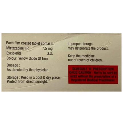 Addmir 7.5 Tablet is used in the treatment of depression. This medicine works by increasing the level of chemical messengers (serotonin and noradrenaline) in the brain that help calm the brain and relax the nerves, thus treating your depression. Addmir 7.5 Tablet may be taken with or without food. It is advised to take this medicine at a fixed time each day to maintain a consistent level in the blood. If you miss any doses, take it as soon as you remember. Do not skip any doses and finish the full course of treatment even if you feel better. It is important that this medication is not stopped suddenly as it may worsen your symptoms.Some common side effects of this medicine include dryness in the mouth, increased appetite, and headaches. It even causes dizziness and sleepiness, so do not drive or do anything that requires mental focus until you know how this medicine affects you. This medicine may cause weight gain; therefore, you should have a balanced diet and exercise regularly. Moreover, it is important to inform your doctor if you develop a sore throat or fever after taking this medicine.