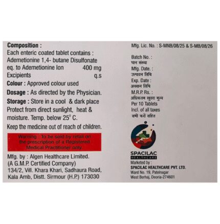 Ademenine 400mg Tablet is a medicine used for the treatment of liver disease associated with reduced bile formation (intrahepatic cholestasis). It protects the liver cells from toxins and helps the liver to perform its normal functions. Ademenine 400mg Tablet may be taken with or without food. The dose will depend on what you are being treated for and your body weight. This medicine needs to be taken regularly to get the most benefit and you may have to take it for several months or longer, so try to get into a routine. Keep using it as prescribed even if your symptoms disappear.The most common side effects are nausea, diarrhea, upset stomach, constipation, and dizziness. Not everyone gets side effects. If you are worried about them, or they do not go away, let your doctor know. If you have problems with diarrhea your doctor may reduce the dose or stop the treatment. Drink enough of water or fluids to stay hydrated in case of severe diarrhea and constipation.Before taking this medicine, you should tell your doctor if you are pregnant, planning pregnancy or breastfeeding. Using this medicine can reduce or increase the effect of some other medicines so tell your doctor, all other medicines you are taking. Avoid drinking alcohol as it might increase side effects.