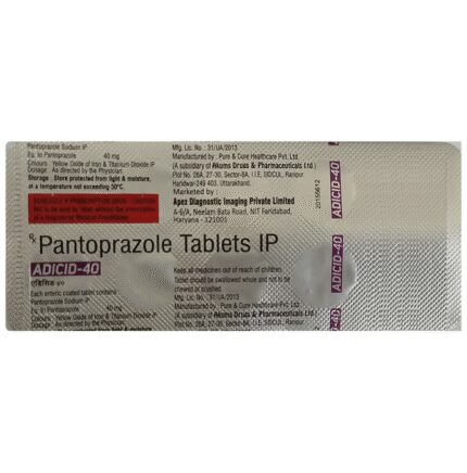 Adicid 40 Tablet is a medicine that reduces the amount of acid produced in your stomach. It is used for treating acid-related diseases of the stomach and intestine such as heartburn, acid reflux, peptic ulcer disease, and Zollinger-Ellison syndrome. It provides relief from the symptoms and promotes healing. Adicid 40 Tablet is also used to prevent stomach ulcers and acidity that may be seen with the prolonged use of painkillers. It belongs to a class of medicines known as proton pump inhibitors (PPIs). This medicine should be taken one hour before a meal, preferably in the morning. The dose will depend on your underlying condition and how you respond to the medicine. You should keep on taking it as prescribed even if your symptoms disappear quickly. You can increase the efficiency of the treatment by eating smaller meals more often and avoiding caffeinated drinks (like tea and coffee), and spicy or fatty foods.The most common side effects observed with this medicine include nausea, vomiting, headache, dizziness, flatulence, diarrhea, and stomach pain. These symptoms are generally mild but if they bother you or do not go away, consult your doctor. Long-term use of this medicine may lead to an increased risk of side effects. For instance, using this medicine for more than 1 year may increase your risk for bone fractures, especially with higher doses. Talk to your doctor about ways to prevent bone loss (osteoporosis), like taking calcium and vitamin D supplements.Before taking this medicine, you need to tell your doctor if you have severe liver problems, are taking medicines for HIV, have ever had an allergic reaction to similar medicines in the past, or suffer from bone loss (osteoporosis). Pregnant or breastfeeding women should also consult their doctor before taking it.