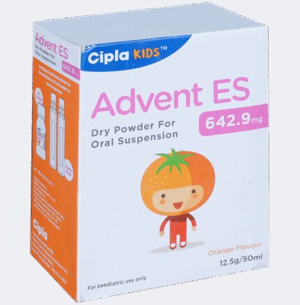Advent ES Oral Suspension is an antibiotic that helps your body fight infections caused by bacteria. It is used to treat infections of the lungs (e.g., pneumonia), ear, nasal sinus, urinary tract, skin, and soft tissue. It will not work for viral infections such as the common cold. Advent ES Oral Suspension is best taken with a meal to reduce the chance of a stomach upset. You should take it regularly at evenly spaced intervals as per the schedule prescribed by your doctor. Taking it at the same time daily will help you remember to take it. The dose will depend on what you are being treated for, but you should always complete an entire course of this antibiotic as your doctor prescribes. Please do not stop taking it until you have finished, even when you feel better. If you stop taking it early, some bacteria may survive, and the infection may return or worsen.The most common side effects of Advent ES Oral Suspension include nausea, diarrhea, vomiting, fungal infections of the mouth, skin fold or vagina, skin rashes, and vaginitis. These are usually mild, but let your doctor know if they bother you or will not go away.Before taking it, let your doctor know if you are allergic to any antibiotics or have kidney or liver problems. You should also inform your healthcare team about all other medicines you are taking as they may affect or be affected by Advent ES Oral Suspension. This medicine is generally considered safe to use during pregnancy and breastfeeding if prescribed by a doctor.