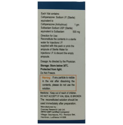 Aegitum-CP Injection is a combination medicine. It is prescribed to treat various types of bacterial infections. It fights against the microorganisms to prevent their growth and further spread of the infection. Aegitum-CP Injection should only be administered under the supervision of a healthcare professional. Do not miss any scheduled appointments for taking this medicine. The course of the treatment must be completed even if you feel better. Sudden discontinuation of the treatment may affect the potency of the medicine.Some common side effects of this medicine are nausea, vomiting, diarrhea, indigestion, etc. If any of the side effects get aggravated, you must consult your doctor immediately. If you experience any allergic reaction (rashes, itching, swelling, shortness of breath, etc.), you must seek immediate medical help.Before taking this medicine, you should tell your doctor if you are taking any medicines for any health condition. Pregnant or breastfeeding women should also consult with their doctor before taking it. Avoid drinking alcohol as it can cause excessive drowsiness with this medicine. It usually does not impair your ability to drive, but you should not drive if it makes you feel sleepy or dizzy. You must take adequate rest for a faster recovery, also take a healthy diet and drink plenty of water. Your doctor may ask for a few laboratory and diagnostic tests to know the effects of the medicine on your body.
