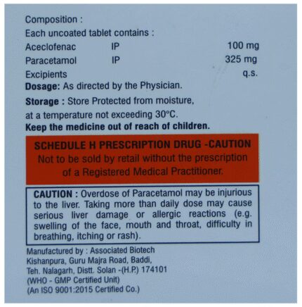 Aeoflam AP 100mg/325mg Tablet is a pain-relieving medicine. It is used to reduce pain and inflammation in conditions like rheumatoid arthritis, ankylosing spondylitis, and osteoarthritis. It may also be used to relieve muscle pain, back pain, toothache, or pain in the ear and throat. Aeoflam AP 100mg/325mg Tablet should be taken with or without food. You should take it regularly as advised by your doctor. Your doctor may change the dose and time between doses according to your pain level and your needs. Do not take more or use it for a longer duration than recommended by your doctor.Some of the common side effects of this medicine include nausea, vomiting, stomach pain, heartburn, and diarrhea. If any of these side effects bother you or do not go away with time, you should let your doctor know. Your doctor may help you with ways to reduce or prevent these side effects by prescribing an alternative medicine or adjusting the dose.Aeoflam AP 100mg/325mg Tablet may not be suitable for everybody. Before taking it, let your doctor know if you have any problems with your heart, kidneys, liver, or have stomach ulcers. To make sure it is safe for you, let your doctor know about all the other medicines you are taking. Pregnant and breastfeeding mothers should first consult their doctors before using Aeoflam AP 100mg/325mg Tablet.
