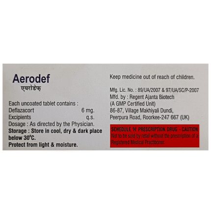 Aerodef Tablet belongs to a group of medicines called steroids. It is used for the treatment of various diseases and conditions such as inflammatory conditions and autoimmune conditions. Aerodef Tablet works by inhibiting the release of substances that cause swelling or by changing how the immune system works. It can be taken on an empty stomach or after food. Taking the medicine regularly at the right times increases its effectiveness. It is important to keep taking the medicine regularly until your doctor tells you it is safe to stop.Use of this medicine may cause some common side effects such as increased appetite, weight gain, frequent urge to urinate, Cushing syndrome, cough, upper respiratory tract infection, abnormal hair growth, obesity, and nasopharyngitis. If any of these side effects bother you, let your doctor know.Aerodef Tablet can make it harder for you to fight off infections. Tell your doctor if you have any signs of infection such as a fever or sore throat. Before taking the medicine, you should let your doctor know of all the other medicines you are taking. Pregnant and breastfeeding women should consult their doctors before taking the medicine.