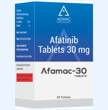 Afamac 30 Tablet is used in the treatment of non-small cell lung cancer. It is used in the treatment of adult patients who have certain mutations of epidermal growth factor receptor (EGFR). Afamac 30 Tablet should be taken on an empty stomach, but try to have it at the same time every day to get the most benefits. Your doctor will decide what dose is necessary and how often you need to take it. This will depend on what you are being treated for and may change from time to time. You should take it exactly as your doctor has advised. Taking it in the wrong way or taking too much can cause very serious side effects. It may take several weeks or months for you to see or feel the benefits but do not stop taking it unless your doctor tells you to.The most common side effects of this medicine include diarrhea, rash, dry skin, and nausea. Diarrhea can be serious sometimes so take medicine to treat it as prescribed by the doctor or stay hydrated. Your doctor may advise for some blood tests while you are taking this medicine. It may also make your skin sensitive to the sun, so use sunscreen and wear protective clothing if you have to be in sunlight. Inform your doctor if you notice pain or redness in the eye or dry eye.Before taking it, tell your doctor if have a breathing problem, liver, or kidney problems, or are taking any medicines to treat infections. Many other medicines can affect, or be affected by, this medicine so let your healthcare team know all medications you are using. This medicine is not recommended during pregnancy or while breastfeeding. The use of effective contraception by females during treatment is important to avoid pregnancy.