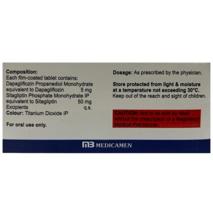 Affodapa S 5/50 Tablet is a combination medicine that helps control blood sugar levels. This medicine is used together with diet and exercise to improve blood sugar control in adults with type 2 diabetes mellitus. It helps in proper utilization of insulin, thereby lowering the blood sugar level. Affodapa S 5/50 Tablet can be taken with or without food at any time of day but try to take it at the same time every day. The dose will be decided by your doctor, and don’t stop taking it without consulting them. If you do, your blood sugar levels may increase and put you at risk of serious complications like kidney damage and blindness. This medicine is only a part of the treatment program that should include a healthy diet, regular exercise, and weight reduction as advised by your doctor.The most common side effects of Affodapa S 5/50 Tablet include urinary tract infection, nasal congestion, sore throat, and upper respiratory tract infection. Drinking plenty of fluids while using it will help prevent dehydration. Some people may develop fungal infections in the genital area. Maintaining good hygiene can help prevent this.Before taking this medicine, inform your doctor if you have any kidney or liver problems, a urinary tract infection, or you are on water pills (diuretics). Pregnant or breastfeeding women should also consult their doctor before taking it. Avoid excessive alcohol intake while taking this drug as this may increase the risk of some side effects. Monitor your blood sugar levels regularly while taking this medicine.