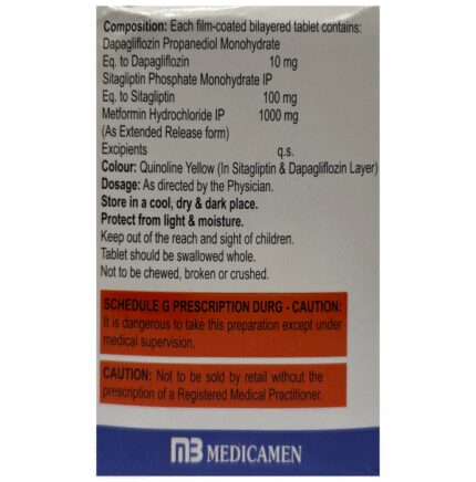 Affodapa SM 1000 Tablet ER is a combination medicine that helps control blood sugar levels. This medicine is used together with diet and exercise to improve blood sugar control in adults with type 2 diabetes mellitus. It helps in proper utilization of insulin, thereby lowering the blood sugar level. Affodapa SM 1000 Tablet ER can be taken with or without food at any time of the day but try to take it at the same time every day. The dose will be decided by your doctor, so don’t stop taking it without asking them. If you do, your blood sugar levels may increase your risk of serious complications like kidney damage and blindness. This medicine is only a part of the treatment program that should include a healthy diet, regular exercise, and weight reduction as advised by your doctor.The most common side effects of this medicine include urinary tract infection, nasal congestion, sore throat, and upper respiratory tract infection. Drinking plenty of fluids while using it will help prevent dehydration. Some people may develop fungal infections in the genital area. Maintaining good hygiene can help prevent this.Before taking Affodapa SM 1000 Tablet ER, inform your doctor if you have any kidney or liver problems, a urinary tract infection, or you are on water pills (diuretics). Pregnant or breastfeeding women should also consult their doctor before taking it. Avoid excessive alcohol intake while taking this medicine, as this may increase the risk of some side effects. Monitor your blood sugar levels regularly while taking this medicine.