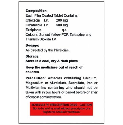 Aflaux-OD Tablet is a combination of two antibiotics. It is used in the treatment of bacterial and parasitic infections. It effectively treats a wide range of bacterial infections that may occur in the teeth, lungs, gastrointestinal infections, urinary and genital tract. Aflaux-OD Tablet is best taken with food. Take it at a fixed time to ensure better efficacy. Do not take more than the recommended dose, as it may have harmful effects on your body. If you miss a dose, take it as soon as you remember. The treatment must be completed even if you feel better to ensure a complete recovery.This medicine may lead to some side effects such as nausea, vomiting, stomach pain, loss of appetite, dizziness, and headache. To overcome any such side effects, it is advised to eat a healthy balanced diet and drink plenty of fluid. If any of the side effects get aggravated, consult your doctor immediately. If you experience any allergic reaction (rashes, itching, swelling, shortness of breath, etc.), you must seek immediate medical help.Before taking this medicine, you should tell your doctor if you have any problems with your liver or kidneys. Also, tell your doctor if you are on any medication for any health condition. Pregnant or breastfeeding women should also consult with the doctors before taking it. Avoid drinking alcohol as it can cause excessive dizziness with this medicine. It usually does not impair your ability to drive, but you should not drive if it makes you feel sleepy or dizzy. If you have known allergies to the medicine, refrain from using this medicine. It is advised to take proper rest during the course of treatment for the medicine to work effectively.