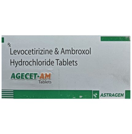 Agecet-AM Tablet is a combination medicine used in the treatment of cough. It relieves allergic symptoms such as sneezing, running nose, watery eyes, itching, swelling, and congestion or stiffness. It also thins and loosens mucus, making it easier to cough out. Agecet-AM Tablet is taken with or without food in a dose and duration as advised by the doctor. The dose you are given will depend on your condition and how you respond to the medicine. You should keep taking this medicine for as long as your doctor recommends. If you stop treatment too early your symptoms may come back and your condition may worsen. Let your doctor know about all other medications you are taking as some may affect, or be affected by this medicine.The most common side effects are stomach upset, dryness in mouth, headache, fatigue, and allergic reaction. Most of these are temporary and usually resolve with time. Contact your doctor straight away if you are at all concerned about any of these side effects. This medicine can also cause dizziness and sleepiness, so do not drive or do anything that requires mental focus until you know how this medicine affects you. Avoid drinking alcohol while taking this medicine as it can make dizziness worse.Never support self-medication or recommend your medicine to another person. It is beneficial to have plenty of fluids while taking this medication. Before taking it, you should tell your doctor if you have any kidney and liver diseases. Pregnant or breastfeeding women should also consult their doctor before taking this medicine.