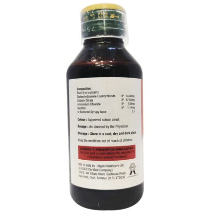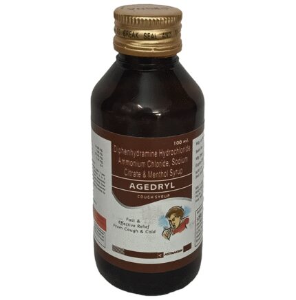 Agedryl Syrup is a combination medicine used to treat cough. It thins the mucus in the nose and windpipe, making it easier to cough out. This medicine also relieves allergic symptoms like runny nose, watery eyes, sneezing, throat irritation. Agedryl Syrup is taken with or without food in a dose and duration as advised by the doctor. The dose you are given will depend on your condition and how you respond to the medicine. You should keep taking this medicine for as long as your doctor recommends. If you stop treatment too early your symptoms may come back and your condition may worsen. Let your doctor know about all other medications you are taking as some may affect, or be affected by this medicine.The most common side effects are stomach pain, allergic reaction, thickened respiratory tract secretions, and coordination impaired. Most of these are temporary and usually resolve with time. Contact your doctor straight away if you are at all concerned about any of these side effects. This medicine can also cause sleepiness, so do not drive or do anything that requires mental focus until you know how this medicine affects you. Avoid drinking alcohol while taking this medicine as it can make sleepiness worse.Never support self-medication or recommend your medicine to another person. It is beneficial to have plenty of fluids while taking this medication. Before taking this medicine, you should tell your doctor if you are pregnant, planning pregnancy or breastfeeding. You should tell your doctor if you have any kidney or liver diseases so that your doctor can prescribe a suitable dose for you.
