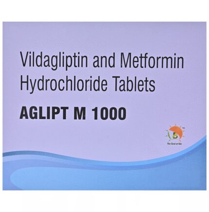 Aglipt M 1000 Tablet is a combination of two medicines that control high blood sugar levels in people with type 2 diabetes mellitus. This helps prevent serious complications of diabetes such as kidney damage and blindness and may also reduce your chances of having a heart attack or stroke. Aglipt M 1000 Tablet can be prescribed alone or together with other diabetes medications. All diabetes medicines work best when used along with a healthy diet and regular exercise. The dose you are given will depend on your condition, blood sugar levels, and what other medicines you are taking. Taking it with meals helps to reduce the chances of developing an upset stomach.You should take it regularly, at the same time each day, to get the most benefit and you should not stop unless your doctor recommends it. It is controlling your blood sugar levels and helping to prevent serious complications in the future. It is important to stay on the diet and exercise program recommended by your doctor while taking this medicine. Your lifestyle plays a big part in controlling diabetes.The most common side effects of taking this medicine include diarrhea, nausea, vomiting, upset stomach, headache, sore throat, weakness, gastroesophageal reflux disease, excessive sweating, and decreased appetite. Low blood sugar level (hypoglycemia) is a possible side effect if you are also taking other diabetes medicines like insulin or sulphonylurea, so you need to know how to recognize and deal with it.This medicine is not suitable for everyone. Before taking it, you should let your doctor know if you have ever had kidney, liver, or heart disease, problems with your pancreas, or if you drink a lot of alcohol. Pregnant or breastfeeding women should also consult their doctor before taking this medicine. Some other medicines can affect this one so tell your doctor about all the medicines you are taking to make sure you are safe. You should try to avoid drinking alcohol as it lowers blood glucose. Your doctor will check your kidney function and blood sugar levels before and during treatment.