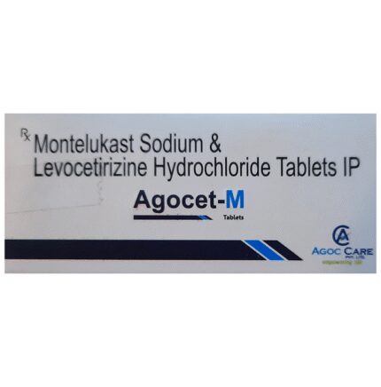 Agocet-M Tablet is a combination medicine used in the treatment of allergic symptoms such as runny nose, stuffy nose, sneezing, itching, swelling, watery eyes and congestion or stuffiness. It also reduces inflammation in the airways and make breathing easier. Agocet-M Tablet is taken with or without food in a dose and duration as advised by the doctor. The dose you are given will depend on your condition and how you respond to the medicine. You should keep taking this medicine for as long as your doctor recommends. If you stop treatment too early your symptoms may come back and your condition may worsen. Let your healthcare team know about all other medications you are taking as some may affect, or be affected by this medicine.The most common side effects are nausea, diarrhea, vomiting, dryness in the mouth, headache, skin rash, flu-like symptoms, and fatigue. Most of these are temporary and usually resolve with time. Contact your doctor straight away if you are at all concerned about any of these side effects. This medicine may cause dizziness and sleepiness, so do not drive or do anything that requires mental focus until you know how this medicine affects you. Avoid drinking alcohol while taking this medicine as it can worsen your sleepiness.Never support self-medication or recommend your medicine to another person. It is beneficial to have plenty of fluids while taking this medication. Before you start taking this medicine it is important to inform your doctor if you are suffering from kidney disease.
